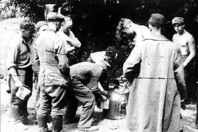 Czasami kwatermistrzostwo dostarczało termosy z zupą prawie na pierwszą linię walki, do oddziałów,