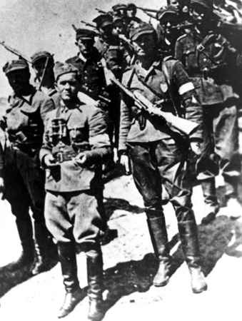 Na czele maszerującej Brygady st. sierż. Jan Piątek „Czarny” dowódca 1. plutonu