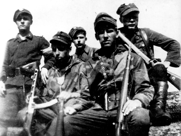 Żołnierze kompanii szturmowej 1. Brygady, od lewej: NN „Trok”, Henryk Trojanowski „Hena”,