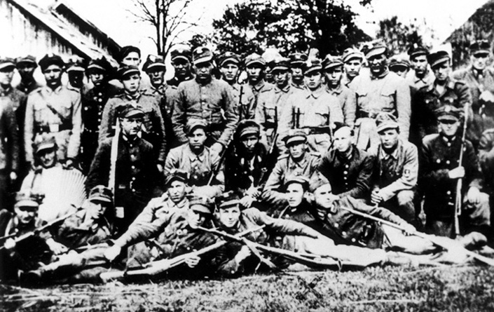 Żołnierze 9. Brygady AK w czasie postoju w Nowej Wsi, maj 1944,