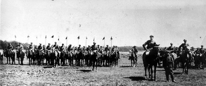 Oddział Rozpoznawczy Komendanta Okręgów na zbiórce, na czele dowódca, por. Władysław Kitowski „Grom”, Dziewieniszki czerwiec 1944, ze zb. Muzeum Armii Krajowej Okręgu Wilno „Wiano”