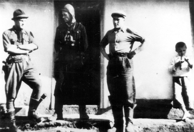 Żołnierze oddziału leśnego 8. kompanii 26. pp w Milczycach, od lewej pchor.