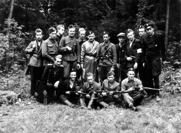 Grupa warszawiaków w 1. kompanii samborskiej, stoją od lewej Kazimierz Grabowski „Cichy”, NN, Antoni Kurowski „Aplażer”, pchor. H. Pawłowski „Orłow”, Stefan Kostecki „Stalowy”, chor. A. Ekiert „Pogarda”, kpr. J. Pakos „Stal”, st. strz. Waldemar Garnier „Filip”, sanitariusz Erdanowski „Gruda”, M. Olszewski,