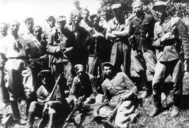 Stoją od lewej (z lornetką) ppor. Stanisław Popławski „Flis”, (bez czapki) ppor. Ludwig Jauernig „Kukułka”, (z rękami na piersi) plut. Jan Bułgajewski „Maryśka”, dalej st. sierż NN „Czarny Sęp”, pchor. Tadeusz Atamaniuk „Babinicz”, ze zbiorów Światowego Związku Żołnierzy Armii Krajowej Obszar Lwów