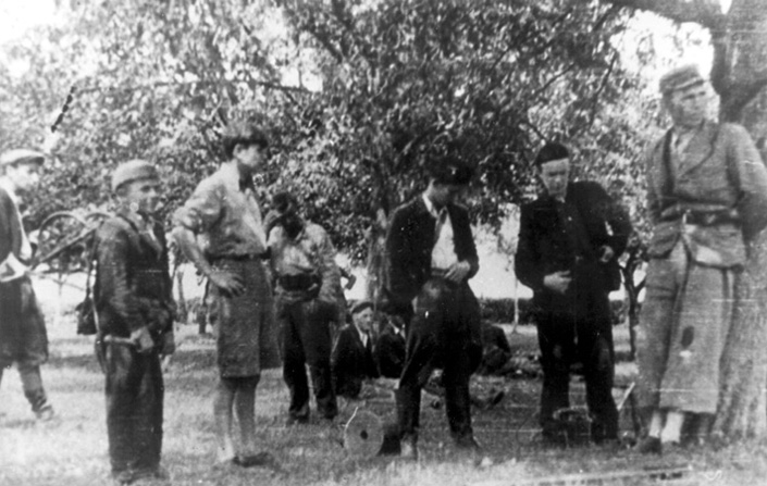 Żołnierze plutonu Antoniego Jazłowieckiego „Ajot” w czasie odpoczynku po akcji, ze zb. Andrzeja Zagórskiego |