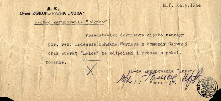 Dokumenty rannego oficera wracają do jego jednostki, ze zb. Marka Ney-Krwawicza