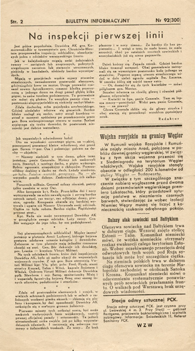 „Biuletyn Informacyjny” z 24 września 1944 r. z informacją o odznaczeniach wręczanych przez gen. Tadeusza Komorowskiego „Bór” żołnierzom na pierwszej linii frontu, m. in. o Krzyżu Virtuti Militari dla por. „Leszka” z Armii Ludowej, ze zb. Marka Ney-Krwawicza