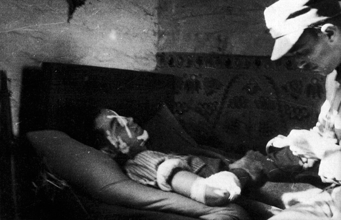 Rannego pod Zapniowem Stanisława Molgę „Żelazny” umieszczono w polowym szpitalu 25. pp AK, Stefanów, sierpień 1944, fot. Jan Jakóbiec, J. Jakóbiec, R. Wójcikowski, My Armii Krajowej Żołnierze, Warszawa 1992