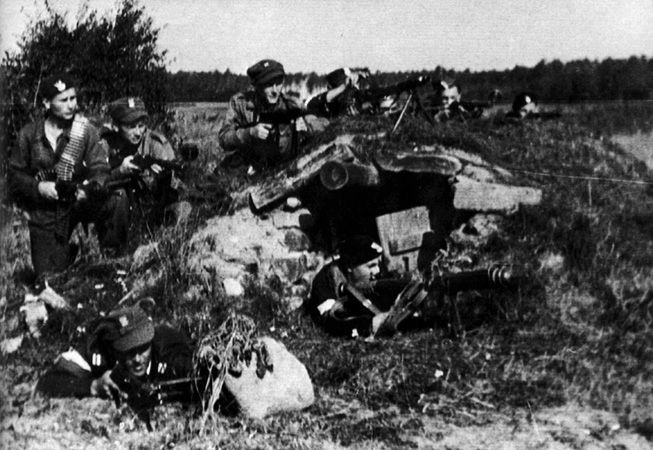 W lasach pomiędzy Radkowem i Krasowem, przez cały dzień 2 DP Leg. AK odpierała ataki niemieckie wsparte czołgami i lotnictwem, 26 września 1944, fot. Jan Jakóbiec, J. Jakóbiec, R. Wójcikowski, My Armii Krajowej Żołnierze, Warszawa 1992