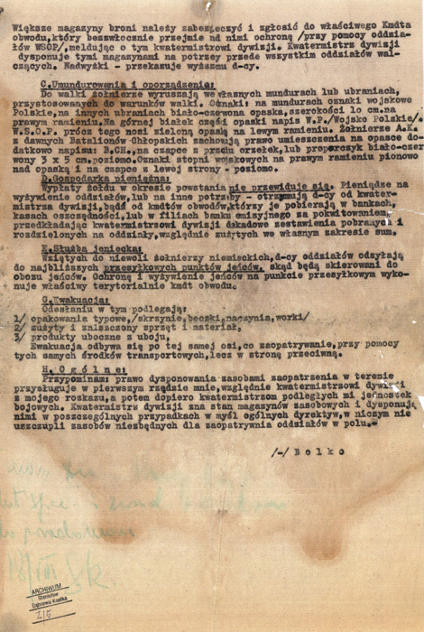 Rozkaz organizacyjny Inspektora Miechowskiego mjr Bolesława Ostrowskiego „Bolko”, ze zb. Stanisława Dąbrowy-Kostki, wszelkie prawa zastrzeżone