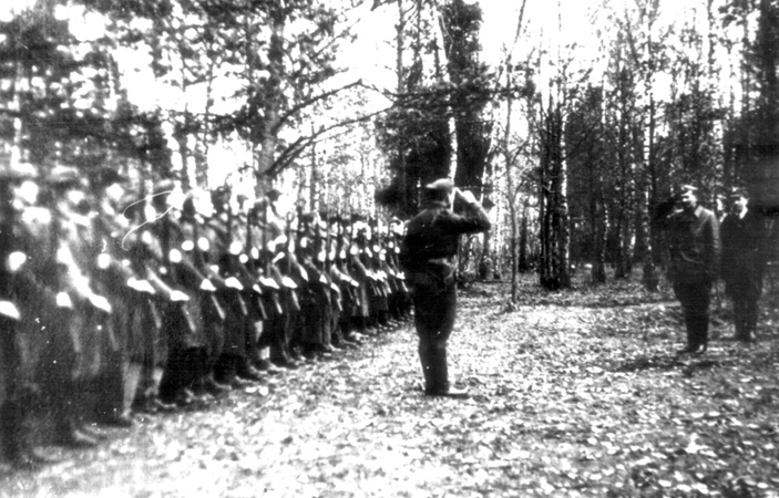 Kpt. Antoni Iglewski „Ponar” odbiera raport w Samodzielnym Batalionie Szturmowym „Suszarnia”,