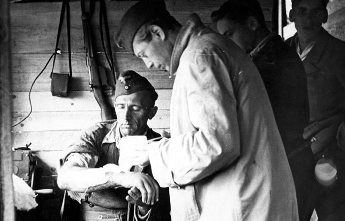 Opatrywanie strąconego rannego lotnika niemieckiego, 6 sierpnia 1944 r., z kolekcji Zofii Horodyńskiej