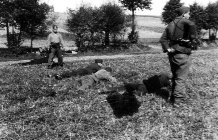 Oddział „Huragan” w czasie ćwiczeń strzeleckich, na pierwszym planie, tyłem, Bolesław Fiszer „Bolek”,