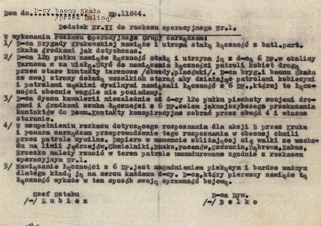 Rozkaz organizacyjny dla Samodzielnego Batalionu „Skała”, ze zb. Stanisława Dąbrowy-Kostki, wszelkie prawa zastrzeżone |