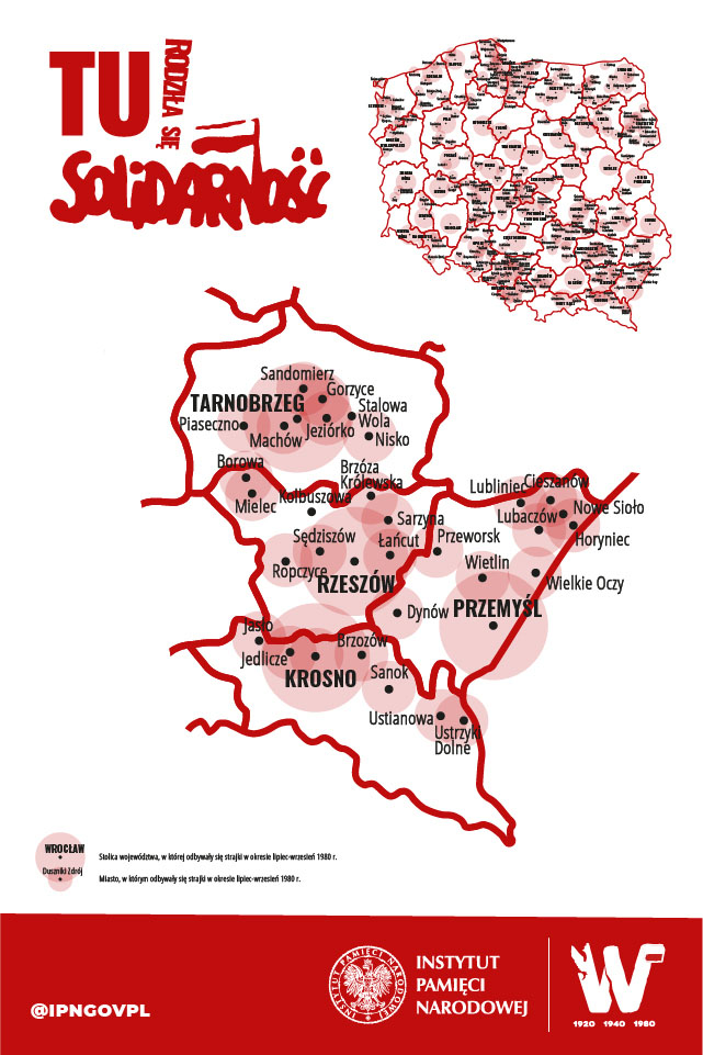 Instytut Pamięci Narodowej rozpoczął obchody 40. rocznicy powstania „Solidarności” otwarciem 1 lipca wystaw w 17 miejscowościach w całej Polsce, od Mielca po Koszalin. Pierwszą z wystaw „Tu rodziła się Solidarność” otworzył w Mielcu na placu Armii Krajowej prezes IPN dr Jarosław Szarek wspólnie z dr. Dariuszem Iwaneczką – dyrektorem rzeszowskiego oddziału IPN oraz Jackiem Wiśniewskim, prezydentem miasta Mielca.