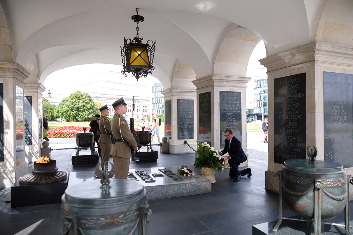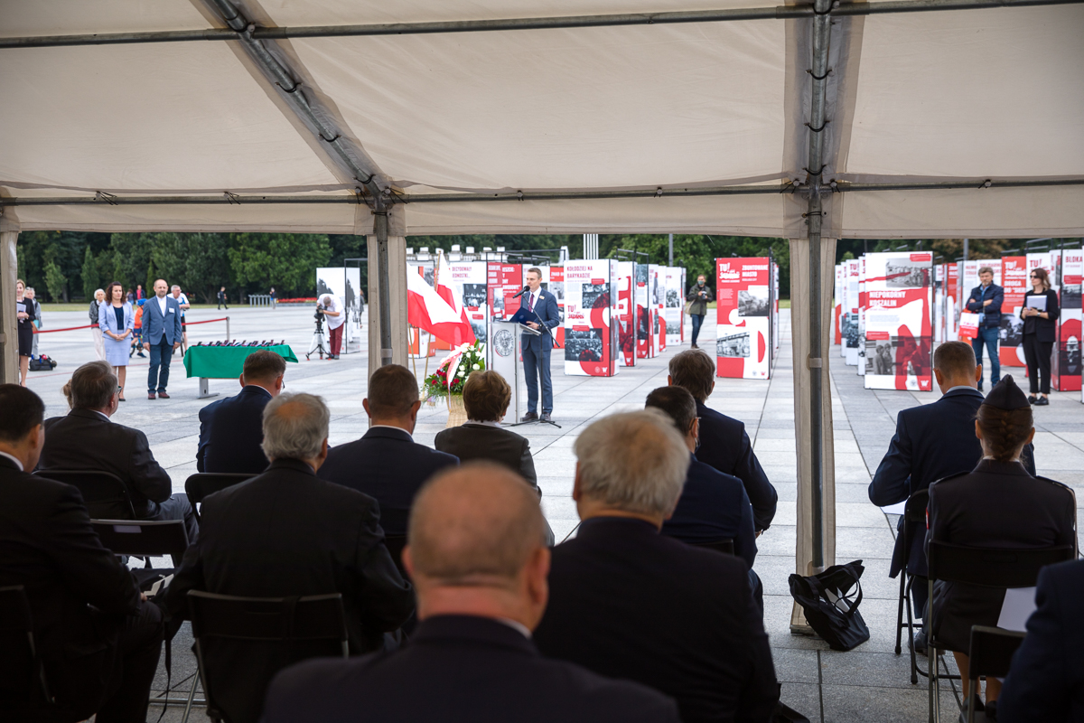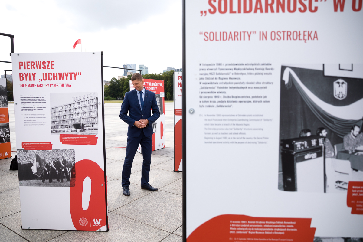 Otwarcie wystawy „Tu rodziła się Solidarność” na placu Piłsudskiego w Warszawie – 28 sierpnia 2020. Fot. Sławek Kasper (IPN) -
