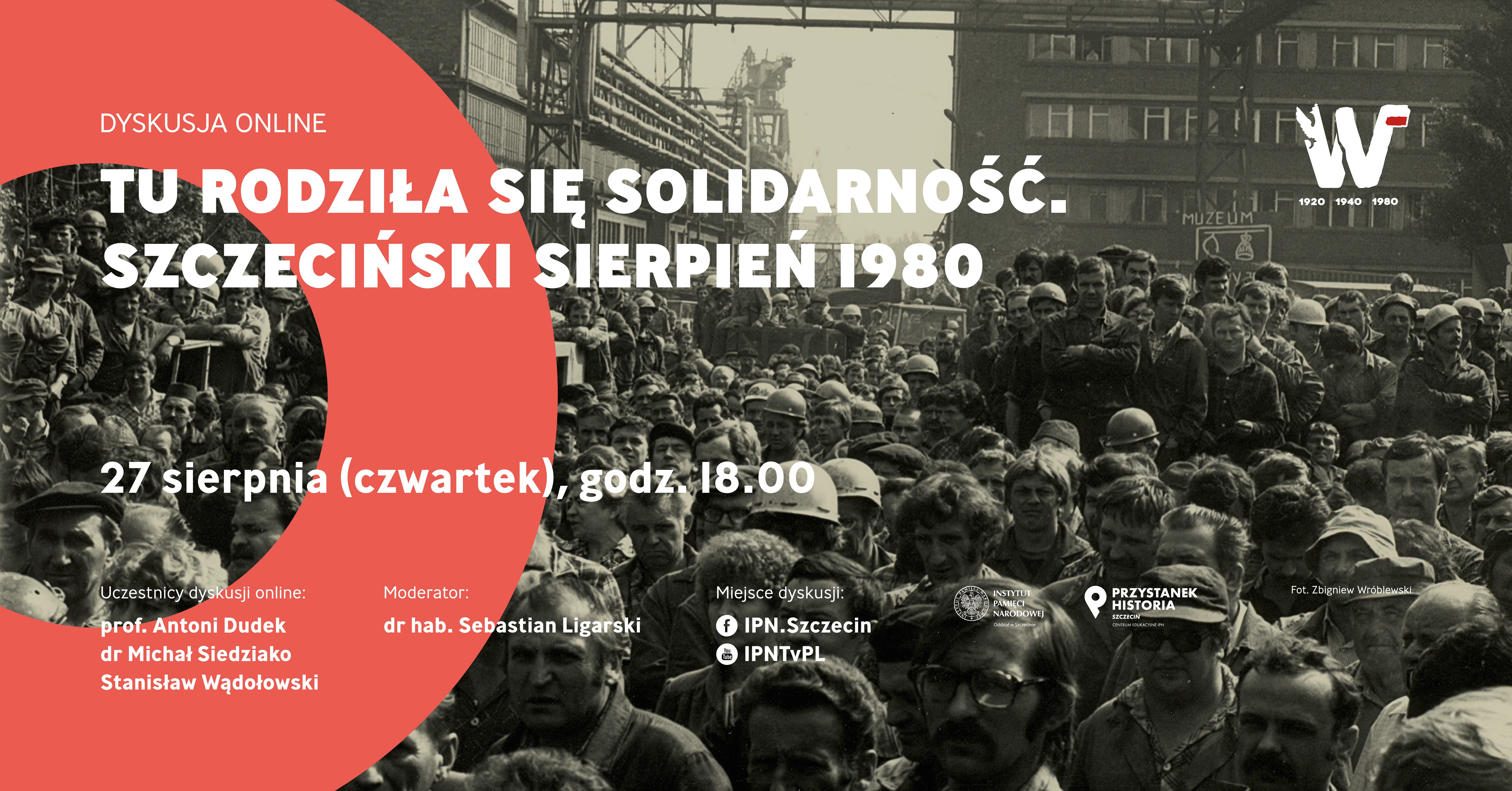 Szczecin był jednym z głównych ośrodków wielkiej fali strajków, która przelała się przez cały kraj, zmiatając ze sceny politycznej ekipę Edwarda Gierka. Finałem protestów było podpisanie – w Szczecinie, Gdańsku, Jastrzębiu-Zdroju i Dąbrowie Górniczej – historycznych porozumień między władzami PRL, a strajkującymi robotnikami. Otworzyły one drogę do powstania Niezależnego Samorządnego Związku Zawodowego „Solidarność” i skupionego wokół niego ogromnego ruchu społecznego. Ruch ten zapoczątkował zmiany zakończone niecałe dziesięć lat później upadkiem komunizmu w Polsce, następnie w kolejnych krajach bloku wschodniego, ostatecznie zaś całego sowieckiego imperium. O szczecińskich, ale nie tylko, wydarzeniach sprzed czterdziestu lat dyskutowali historycy: prof. Antoni Dudek i dr Michał Siedziako oraz świadek historii: Stanisław Wądołowski, jeden z liderów strajkowych Sierpnia'80 w Szczecinie. Dyskusję poprowadził dr hab. Sebastian Ligarski.