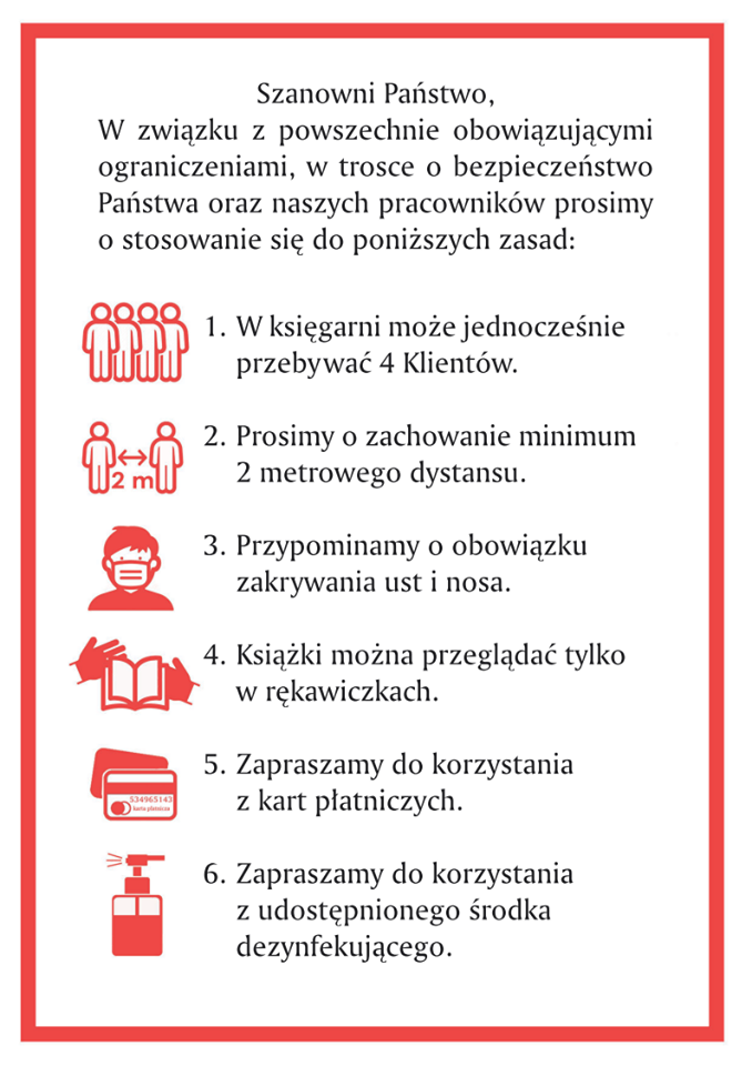 - księgarnie przy ul. Wołoskiej 7 i Krakowskie Przedmieście 64 w normalnych godzinach pracy.