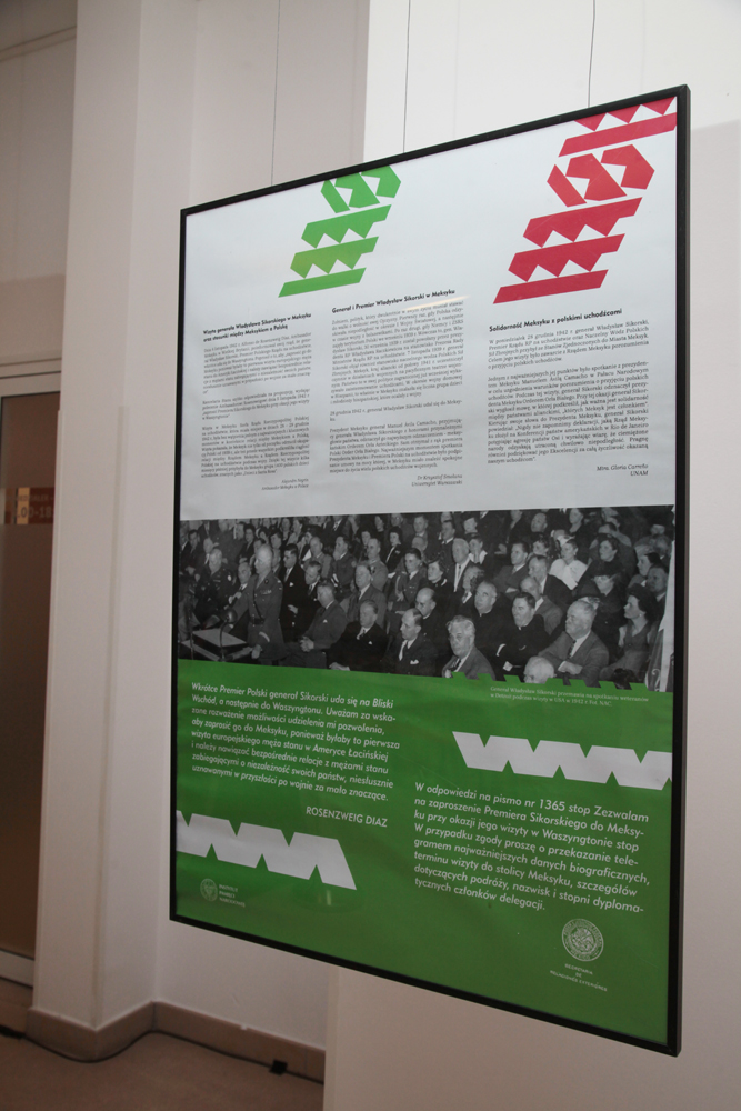 Ekspozycja prezentuje zdjęcia wykonane podczas wizyty generała Sikorskiego w Meksyku w grudniu 1942 r. Przedsięwzięcie świadczyło o tym, że Meksyk odrzucił okupację Polski od 1939 r., a także podkreśliło ciągłość relacji między rządem Meksyku a rządem Rzeczypospolitej Polskiej na uchodźstwie. Dzięki tej wizycie kilka miesięcy później przybyła do Meksyku grupa 1400 polskich dzieci uchodźców, znanych później jako „dzieci z Santa Rosa”. Fotografie pochodzą ze zbiorów Narodowego Archiwum Meksyku i polskiego Narodowego Archiwum Cyfrowego. Wystawa będzie czynna do 7 sierpnia 2020 r.