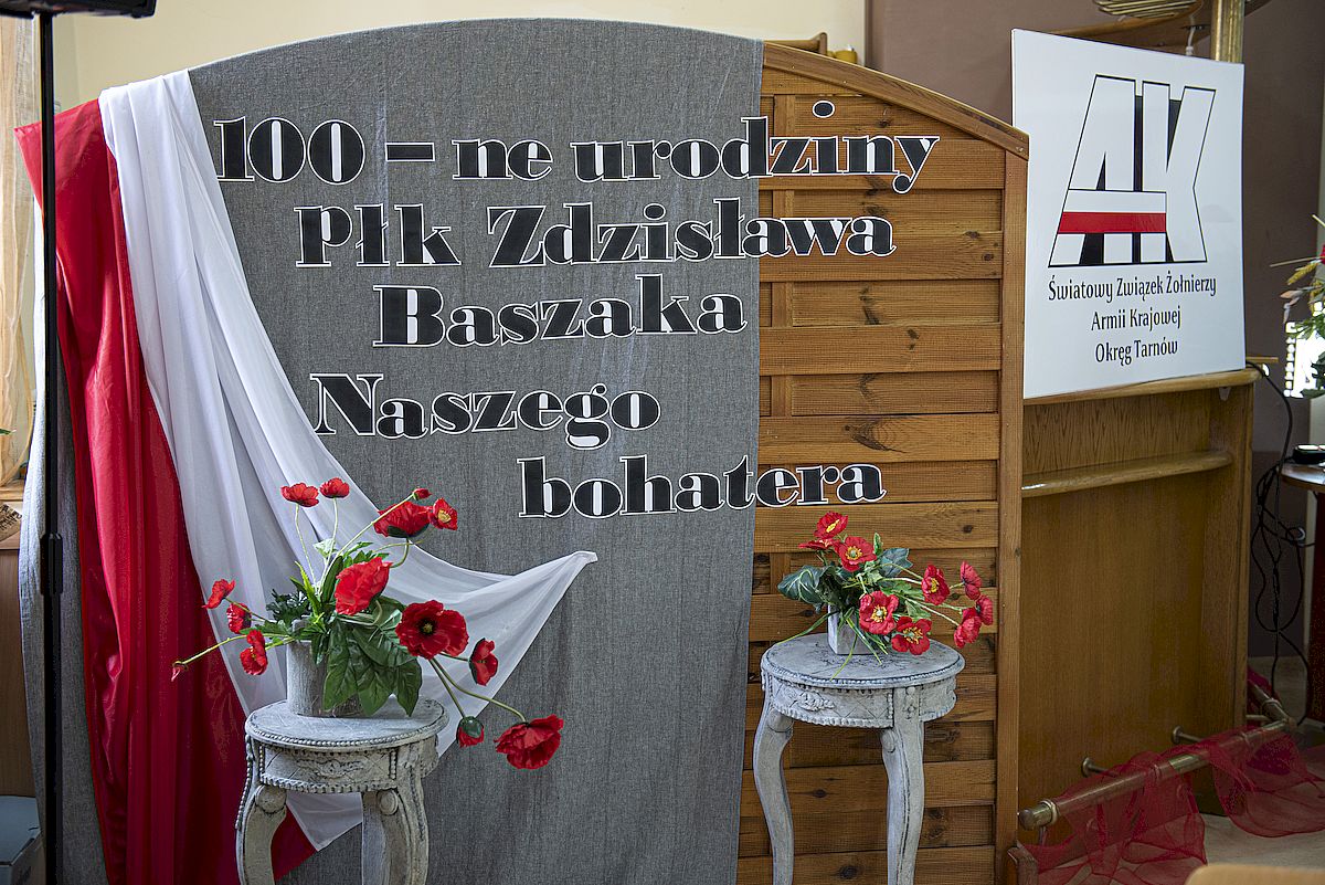 Płk Zdzisław Baszak urodził się 8 lipca 1920 r. w Woli Gręboszowskiej (pow. dąbrowski). Na wojnę wyruszył jako dziewiętnastoletni podchorąży. W kampanii wrześniowej przeszedł szlak bojowy z 16. pp, uczestnicząc m.in. w ciężkich bojach pod Pszczyną i Hutą Różaniecką. Jesienią 1939 r. zaangażował się w działalność konspiracyjną, współtworząc Obwód SZP-ZWZ-AK Dąbrowa Tarnowska. Pełnił funkcję oficera dywersji obwodu oraz komendanta palcówki Dąbrowa Tarnowska – Radgoszcz. Brał udział m.in. w zabezpieczaniu akcji „Most III”, jednej z trzech udanych operacji, polegających na lądowaniu w okupowanym kraju alianckiego samolotu w celu odebrania i przewiezienia na Zachód działaczy podziemia, m.in. przyszłego premiera Rządu RP na Uchodźstwie Tomasza Arciszewskiego oraz materiałów wywiadowczych, w tym dokumentacji i fragmentów niemieckiej rakiety V-2.