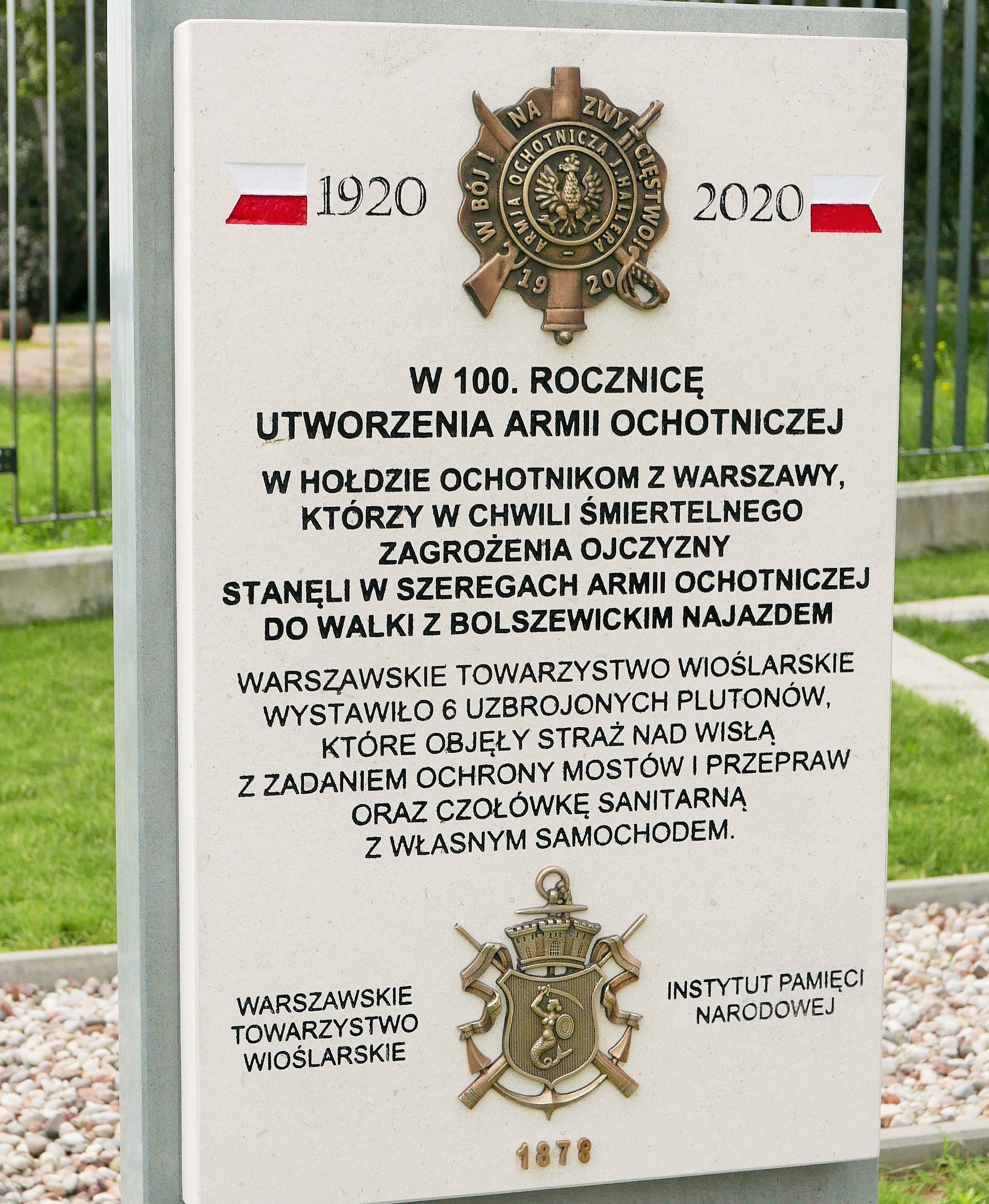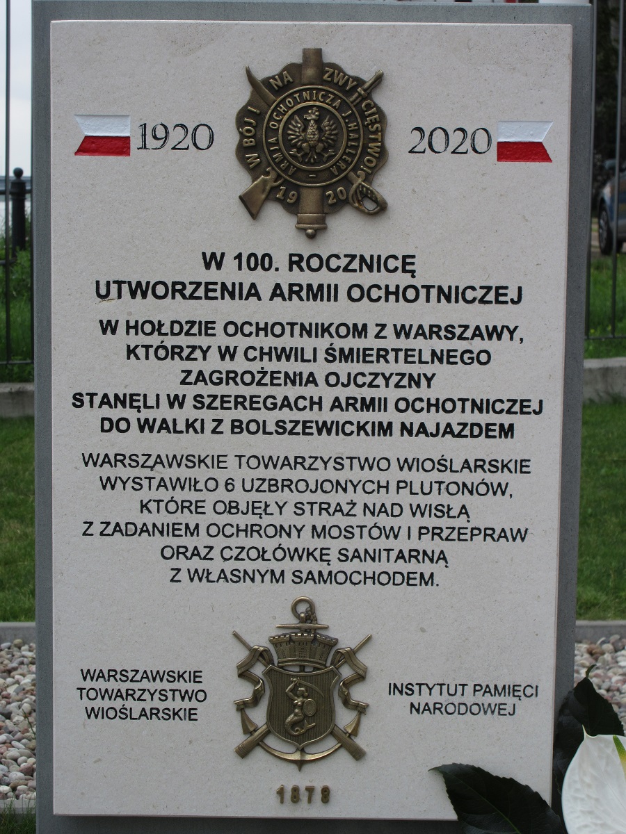 W piątek 17 lipca 2020 r. na terenie przystani Warszawskiego Towarzystwa Wioślarskiego przy ul. Wioślarskiej 6 odsłonięta została tablica upamiętniająca udział członków Warszawskiego Towarzystwa Wioślarskiego w szeregach Armii Ochotniczej 1920 r.