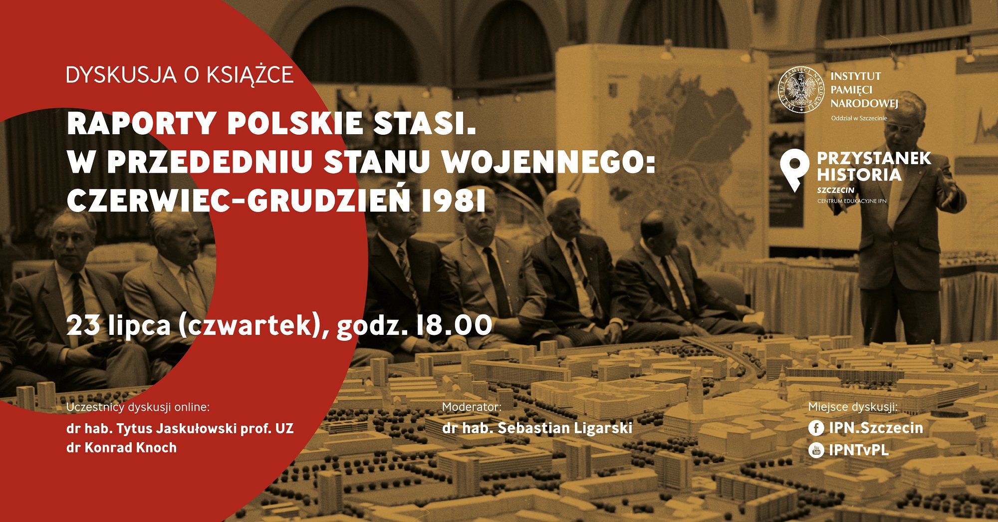 Na fanpage'u Facebook @IPN.Szczecin oraz YouTube IPNtvPL dyskusja wokół książki „Raporty polskie Stasi. W przededniu stanu wojennego: czerwiec-grudzień 1981” opracowanej przez Tytusa Jaskułowskiego, Filipa Gańczaka, Konrada Knocha, Piotar Abryszeńskiego, Ewę Pejaś. Publikację wydał Oddział Instytutu Pamięci Narodowej w Szczecinie.