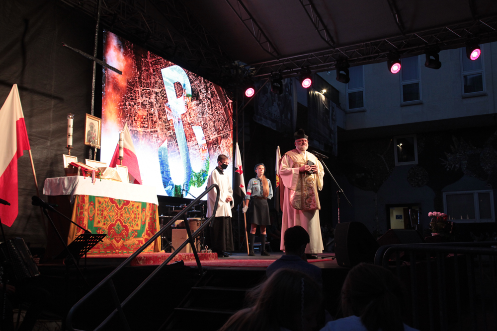 Wieczorem wstęp historyczny do mszy powstańczej wygłosił Tomasz Sikorski z Biura Edukacji Narodowej IPN. Nawiązując do zeszłorocznej mszy, która odbyła się w podwórzu kamienicy przy ul. Poznańskiej 12, powiedział, że zarówno tamta placówka, jak i pobliski Prudential, były bronione do ostatniego dnia powstania. W ubiegłym roku kilka osób ze Związku Dużych Rodzin 3+ uczestniczyło we mszy powstańczej, zorganizowanej przez Biuro Edukacji Narodowej IPN. Paweł Borządek – działacz Związku – chciał powtórzyć w tym roku to głębokie doświadczenie i poprosił BEN o pomoc w organizacji mszy oraz koncertu.