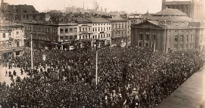 Manifestacja na rynku w Katowicach. Fot. ze zbiorów Archiwum Archidiecezjalnego w Katowicach. -