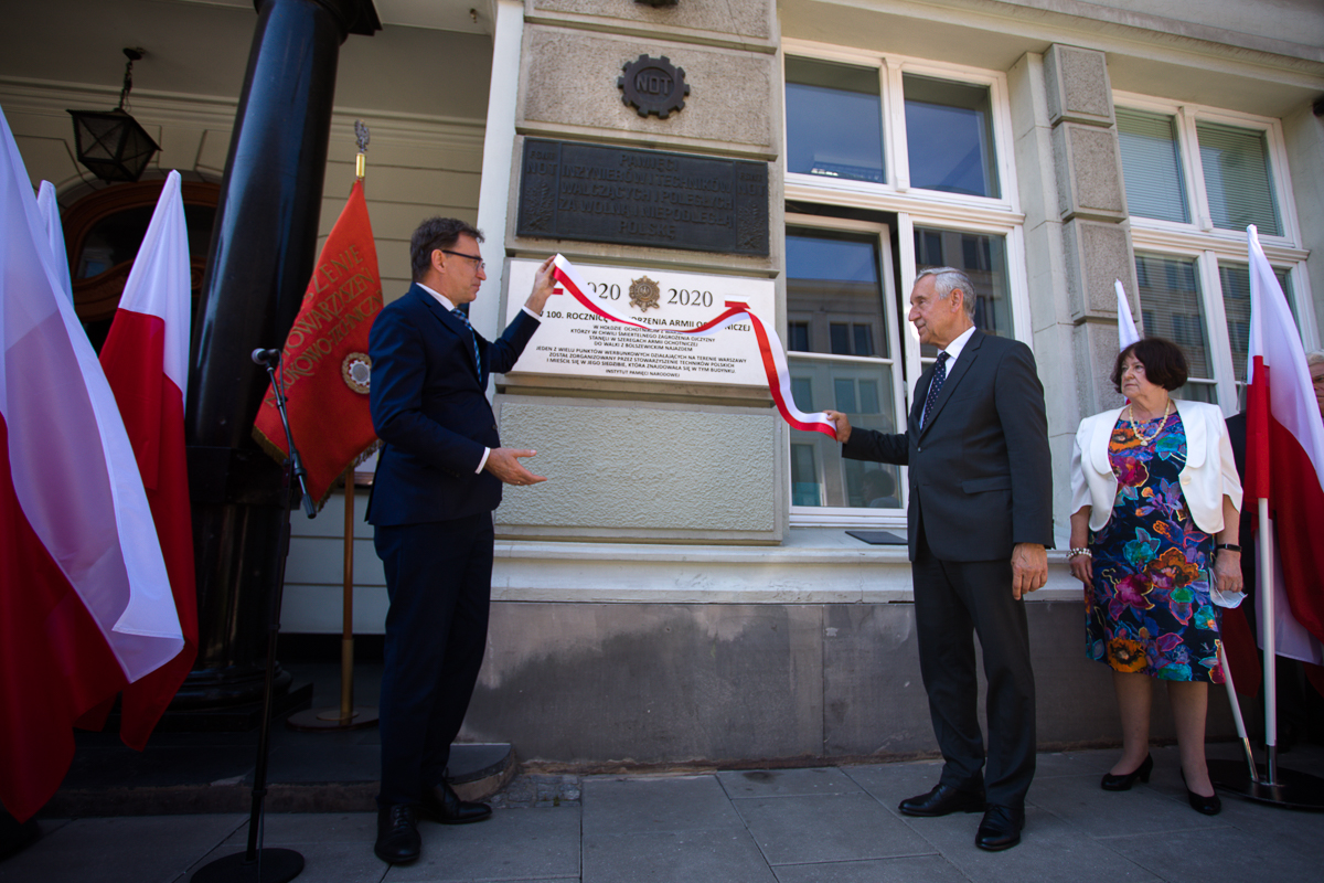 W południe zgromadzeni goście oddali hołd wszystkim żołnierzom, którzy na wieść o zbliżającym się wrogu wstąpili do Armii Ochotniczej. – Dziesiątki tysięcy ludzi poddało się mobilizacji. Efektem tej mobilizacji, do której przystąpiły wszystkie grupy społeczne, było wystawienie ponadstutysięcznej Armii Ochotniczej. Tą tablicą i tymi działaniami my 100 lat później składamy hołd żołnierzom – powiedział podczas uroczystości prezes IPN dr Jarosław Szarek.