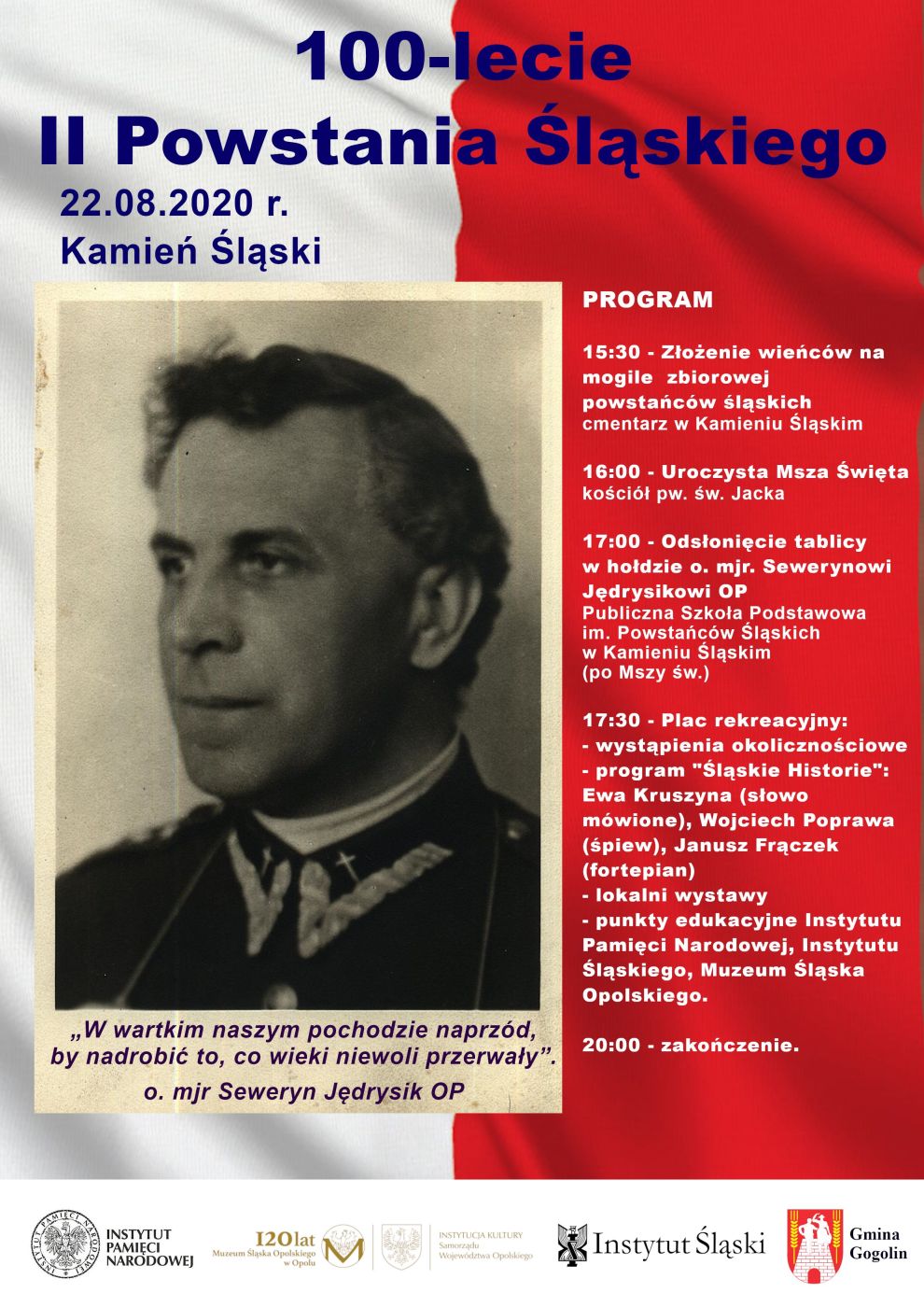 Na pamiątkę tych wydarzeń serdecznie zapraszamy 22 sierpnia 2020 r. na regionalne uroczystości 100-lecia II Powstania Śląskiego do Kamienia Śląskiego.
