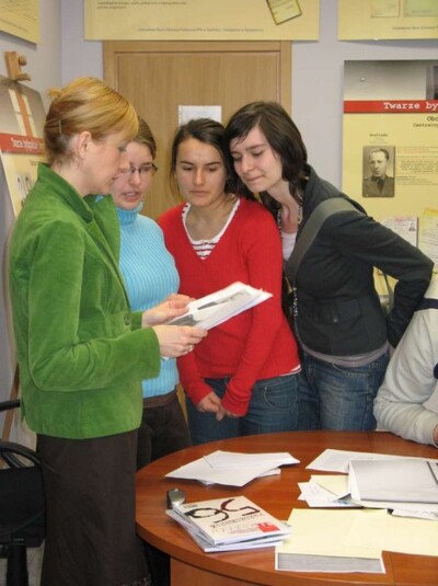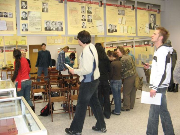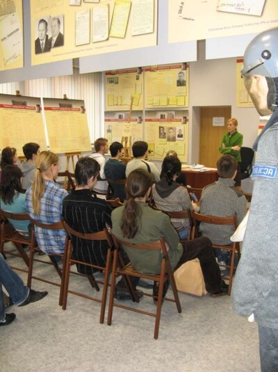 Dnia 16 lutego 2007 r. w sali wystawowo-konferencyjnej im. ks. Jerzego Popiełuszki w Delegaturze IPN w Bydgoszczy odbył się wykład dr Katarzyny Maniewskiej dla tegorocznych maturzystów, zdających egzaminy z historii i wiedzy o społeczeństwie, poświęcony genezie, strukturze oraz obsadzie personalnej i metodom działania aparatu bezpieczeństwa w PRL. Przed częścią merytoryczną licealiści III LO w Bydgoszczy im. Adama Mickiewicza zapoznali się ze strukturą Instytutu Pamięci Narodowej oraz jego historią, a także aktualną działalnością naukową i edukacyjną. Niewątpliwie największe zainteresowanie młodzieży wzbudzały te elementy wykładu, które zawierały informacje dotyczące liczebności i metod działania bezpieki, a nade wszystko ofiar i skali represji stosowanych wobec społeczeństwa polskiego ze strony funkcjonariuszy UB/SB. Po zakończeniu prelekcji młodzież została podzielona na czteroosobowe zespoły, których zadaniem było ustalenie przebiegu służby wskazanych funkcjonariuszy bydgoskiego UB/SB, figurujących na panelach wystawowych „Miecz rewolucji. Twarze bydgoskiej bezpieki 1945–1990”. Zadanie służyło pogłębieniu wiedzy o strukturze aparatu bezpieczeństwa. Grupa, która pierwsza prawidłowo wykonała zadanie, została wyróżniona nagrodą – „ Biuletynem IPN”, którego tematem wiodącym są wydarzenia roku 1956 (nr 10/2006).