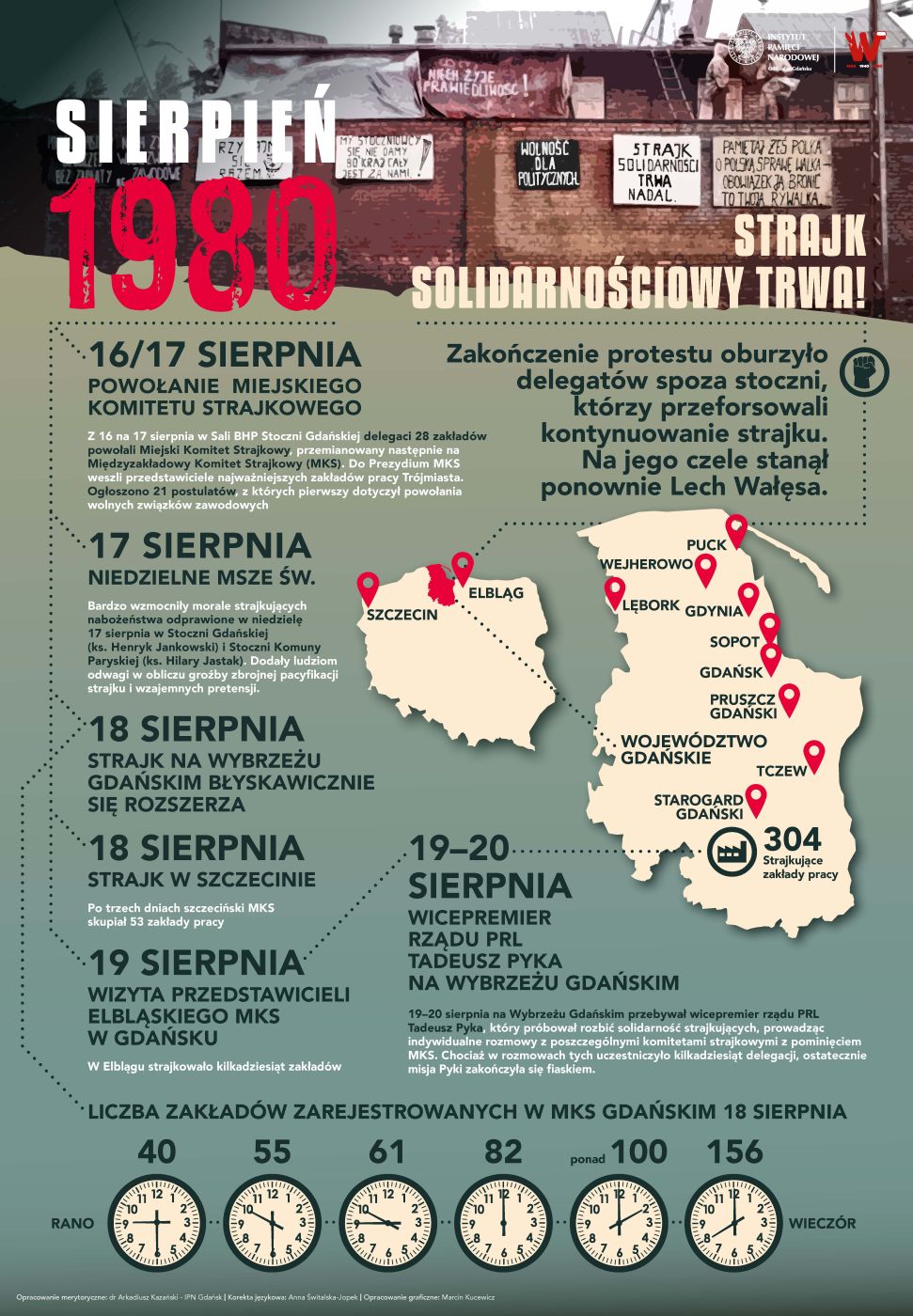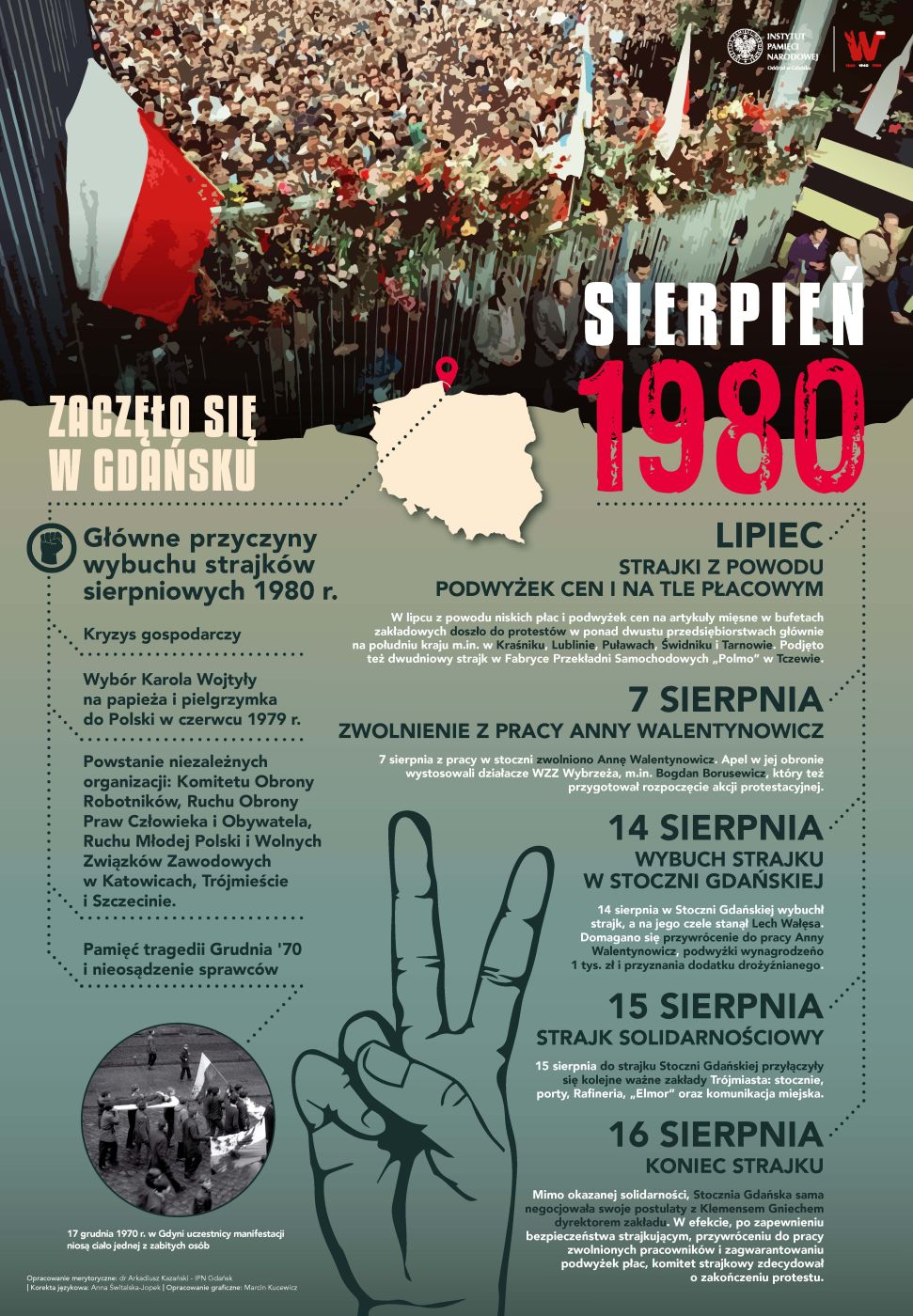 Strajk, który rozpoczął się na Wybrzeżu Gdańskim, objął potem swoim zasięgiem m.in. Szczecin, Elbląg, Bydgoszcz, Dolny i Górny Śląsk, jednocześnie generując niespotykaną wcześniej jedność i solidarność między zwykłymi ludźmi. To sprawiło, że władze PRL, nieprzywykłe do prowadzenia autentycznych rozmów ze społeczeństwem, tym razem zgodziły się uznać racje strajkujących. W efekcie podpisano Porozumienia Sierpniowe, które umożliwiły działalność Niezależnego Samorządnego Związku Zawodowego „Solidarność”, stającego się ogromnym ruchem społecznym. Przeobraził on w sposób pokojowy życie społeczne i polityczne w Polsce tak mocno, że mimo wprowadzonego stanu wojennego, doprowadził do odzyskania przez Polskę niepodległości i upadku systemu komunistycznego w Europie.