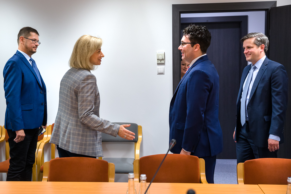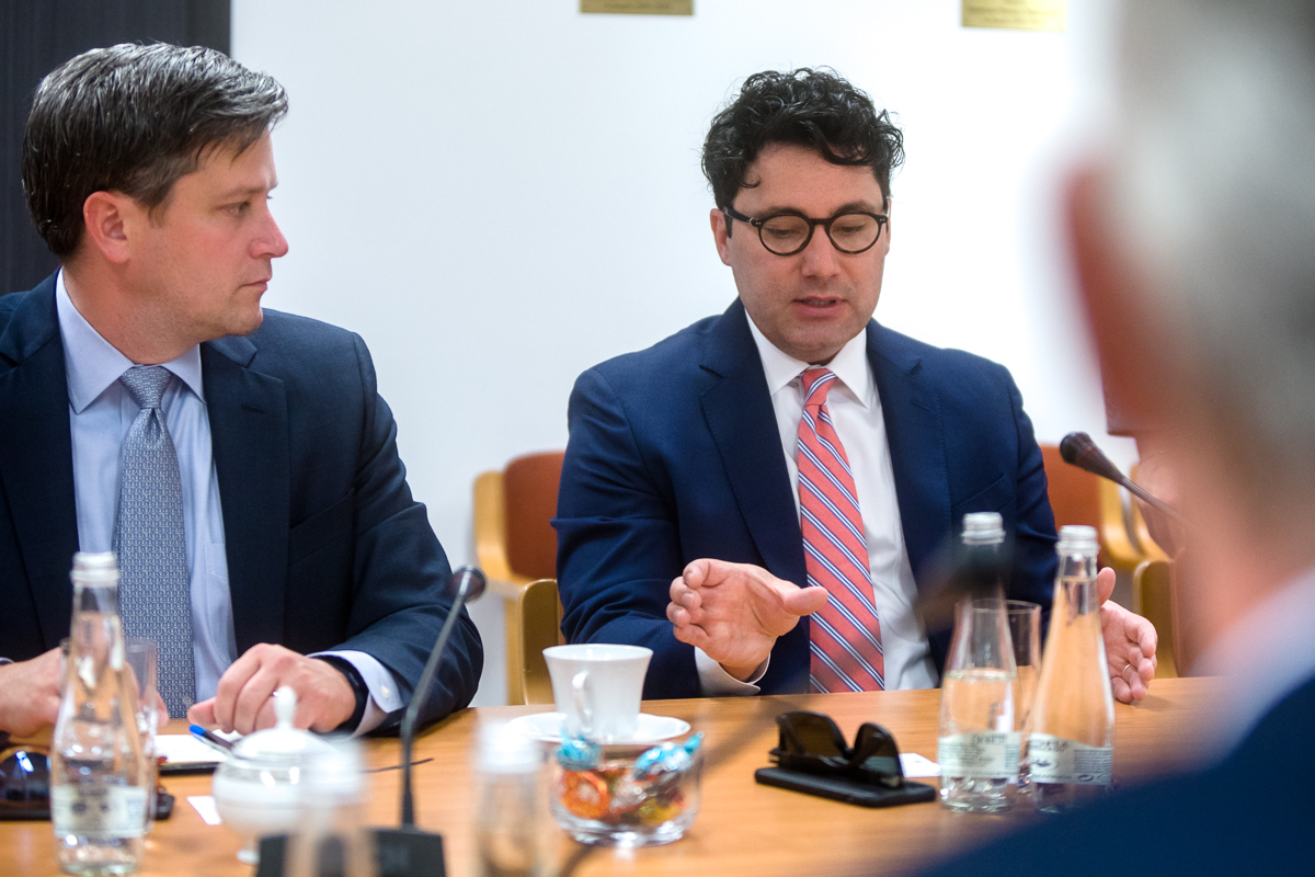 Zastępcy prezesa IPN – dr hab. Krzysztof Szwagrzyk i dr Mateusz Szpytma spotkali się dzisiaj w siedzibie Instytutu z przedstawicielami waszyngtońskiej Fundacji Pamięci Ofiar Komunizmu pod przewodnictwem Mariona Smitha, jej dyrektora zarządzającego. W rozmowach wzięli także udział ze strony amerykańskiej David Talbot, szef sekretariatu, oraz Brittany Balmer, dyrektor ds. operacyjnych, natomiast ze strony polskiej Agnieszka Jędrzak, naczelnik Wydziału Informacji i Kontaktów Międzynarodowych, oraz Przemysław Janiga, pracownik tego wydziału.