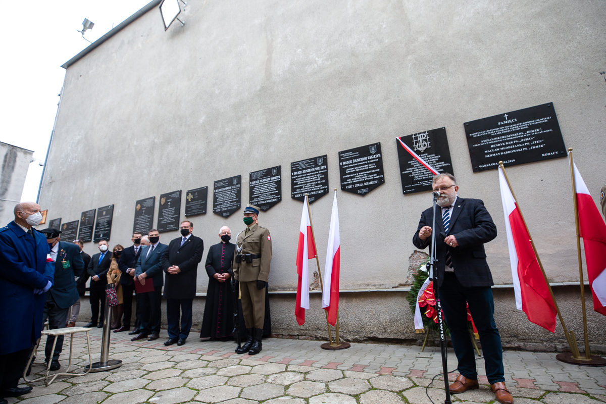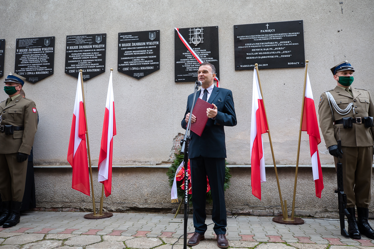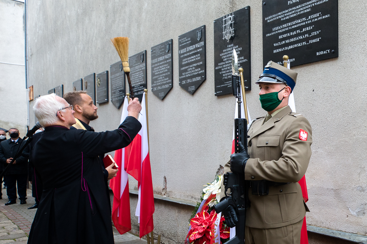 Odsłonięcie tablicy poświęconej pamięci „Młodocianych Więźniów Politycznych, Uczniów, Studentów, Harcerzy – ofiar represji w latach 1944-1956” w Muzeum Żołnierzy Wyklętych i Więźniów Politycznych PRL w Warszawie – 9 października 2020. Fot. Sławek Kasper (IPN)