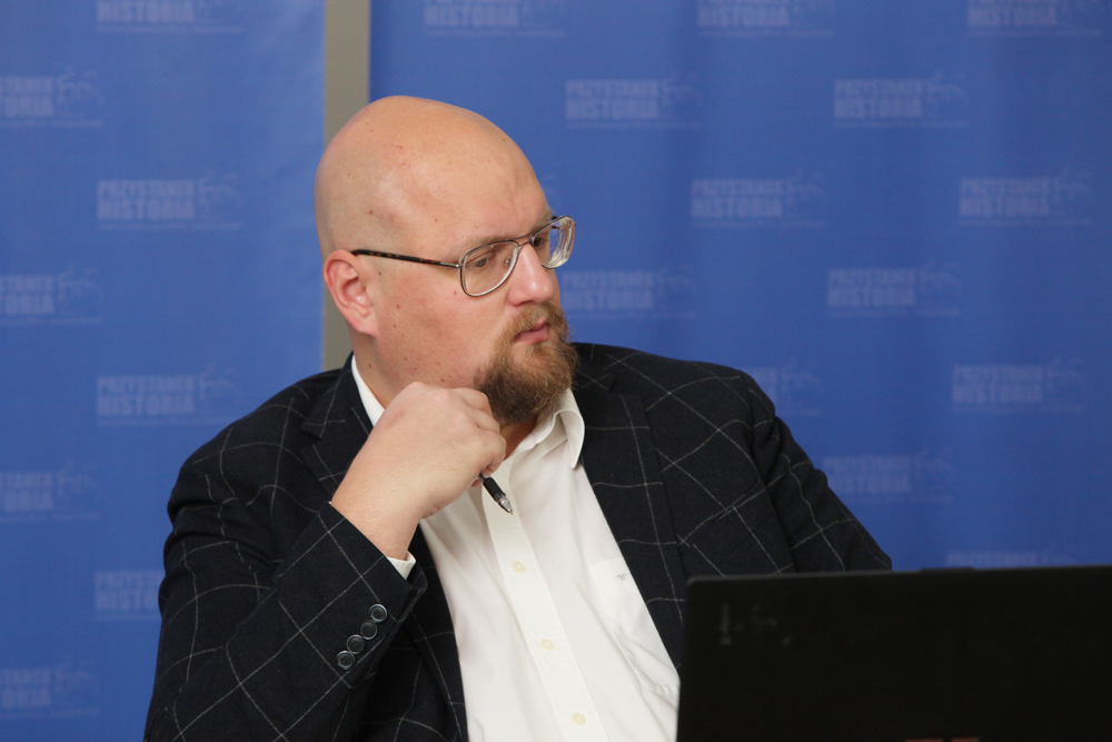 Przemysław Mrówka – prowadzący spotkanie „Świat wobec Szczecina”. Fot. Piotr Życieński (IPN) -