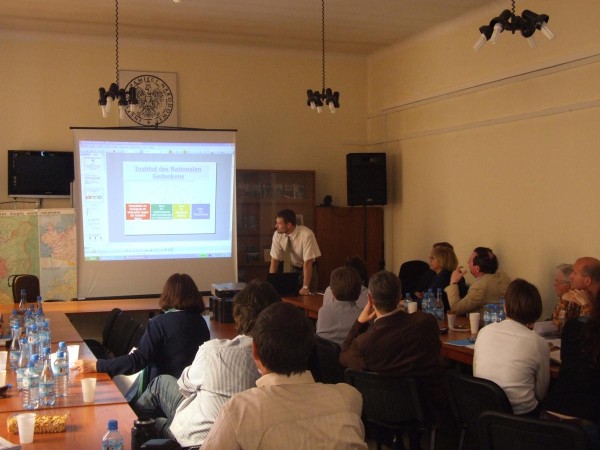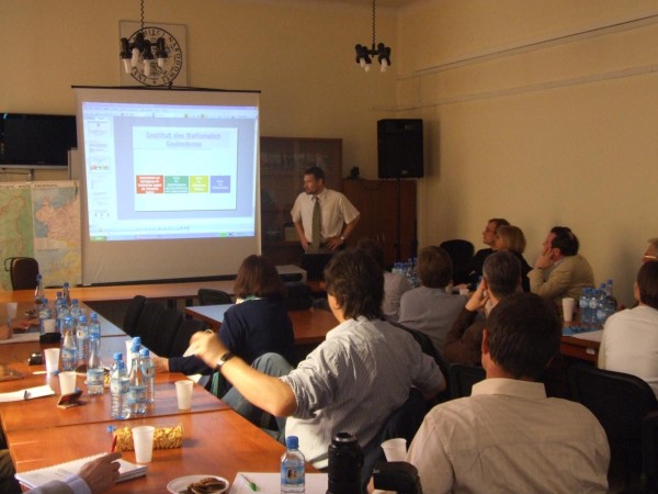 W dniu 20 kwietnia br. w katowickim oddziale Instytutu Pamięci Narodowej gościła wycieczka niemieckich dziennikarzy i muzealników, zorganizowana przez Muzeum Śląskie w Görlitz oraz Deutsches Kulturforum Östliches Europa. Uczestnicy, odbywając podróż po Dolnym i Górnym Śląsku śladami niedawnej przeszłości regionu, zainteresowani byli losami przedwojennego Muzeum Śląskiego, dziejami obozu w Świętochłowicach-Zgodzie w roku 1945 oraz bieżącą działalnością Instytutu Pamięci Narodowej. Problemy te zostały naświetlone przez pracownika OBEP w Katowicach, dr. Grzegorza Bębnika. Szczególnie ostatnie zagadnienie wzbudziło żywą dyskusję, podczas której zadano wiele pytań dotyczących m.in. lustracji, pojęcia zbrodni komunistycznej, ścigania zbrodniarzy hitlerowskich i komunistycznych czy rozmaitych problemów w badaniach naukowych. Po blisko trzygodzinnym pobycie goście odjechali do Świdnicy.