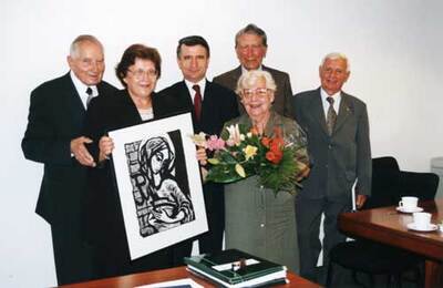 Pani Irena Stankiewicz ofiarowała prof. Leonowi Kieresowi w dowodzie uznania obraz - grafikę swojego autorstwa, przedstawiający Matkę Boską Patronkę Armii Krajowej.
