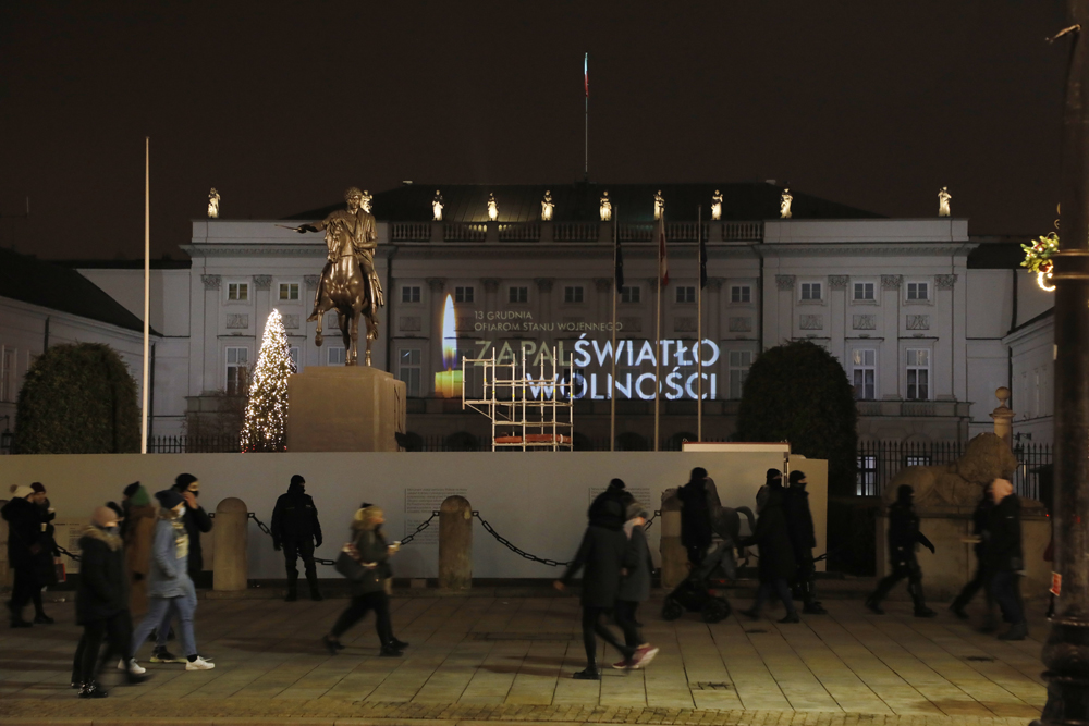 Akcja „Zapal Światło Wolności” w Warszawie, Pałac Prezydencki – 13 grudnia 2020. Fot. Piotr Życieński (IPN)