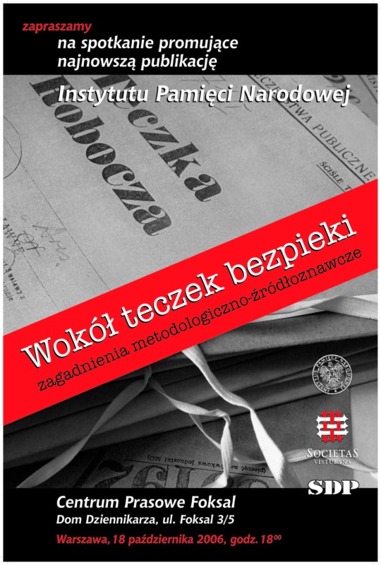 W dniu 18 października 2006 r. o godz. 18.00 w Centrum Prasowym Foksal, Dom Dziennikarza (ul. Foksal 3/5) odbyła się promocja książki „Wokół teczek bezpieki. Zagadnienia metodologiczne -źródłoznawcze”. Promocji towarzyszyła dyskusja z udziałem: Janusza Kurtyki prezesa IPN oraz Antoniego Dudka, Wojciecha Frazika, Filipa Musiała i Moniki Komanieckiej.