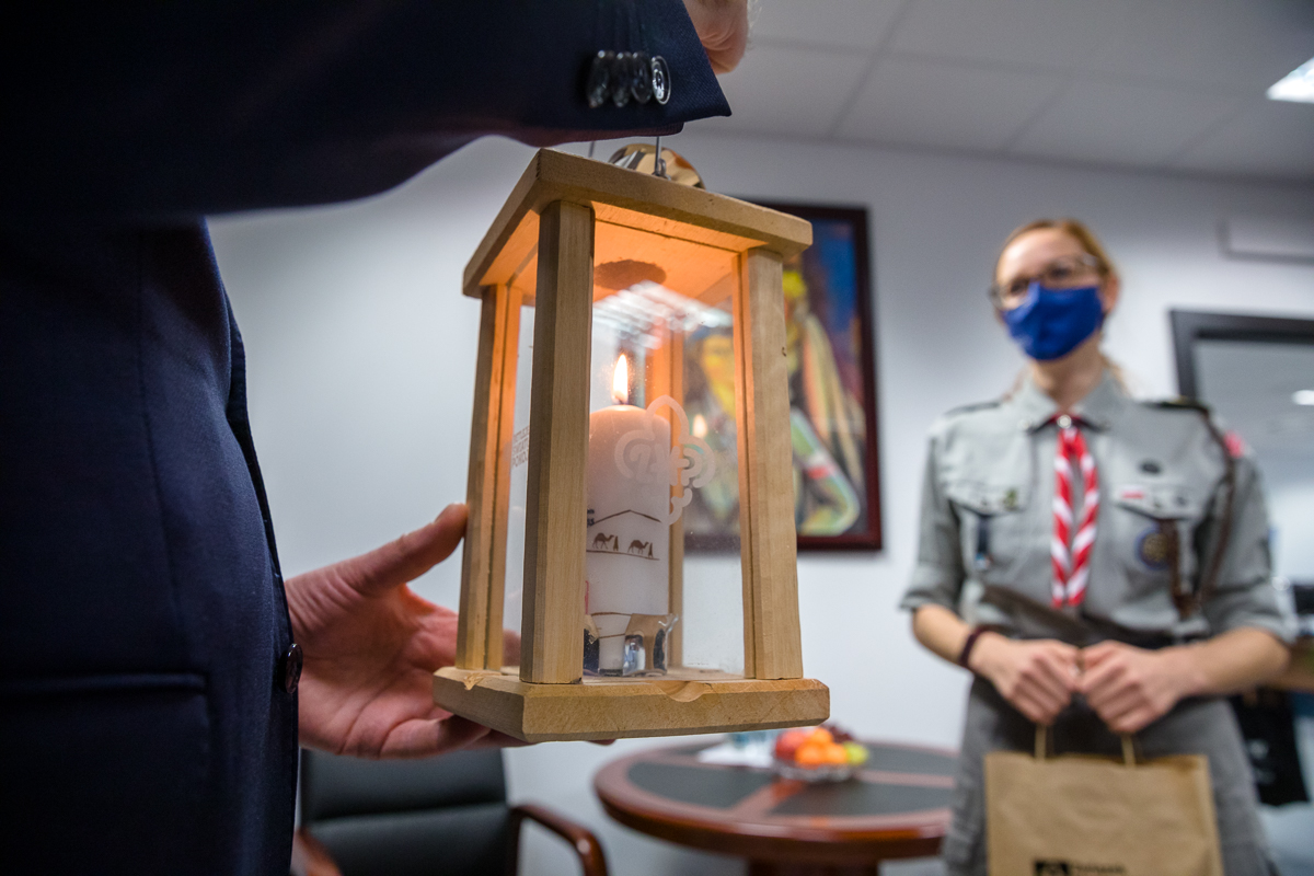 Betlejemskie Światło Pokoju w Instytucie Pamięci Narodowej – 14 grudnia 2020. Fot. Sławek Kasper (IPN)