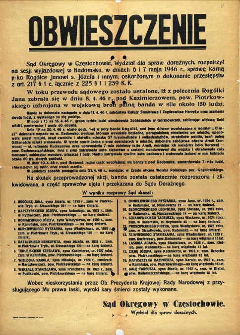 W maju 1946 r. komunistyczny sąd skazał dwunastu żołnierzy Konspiracyjnego Wojska Polskiego na karę śmierci, a pięciu na długoletnie więzienie. Musiało minąć niemal pół wieku, by zamordowanym oddano hołd.