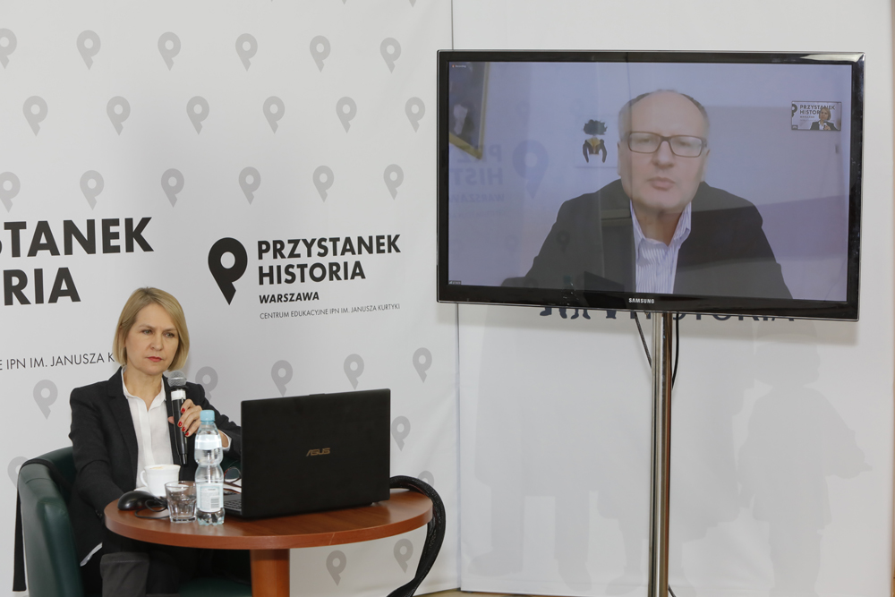 Barbara Stanisławczyk-Żyła i Paweł Lisicki. Dyskusja „Libido dominandi jako metoda manipulacji społecznej” z cyklu „Polska na froncie sporów cywilizacyjnych” – 18 lutego 2021. Fot. Piotr Życieński (IPN)