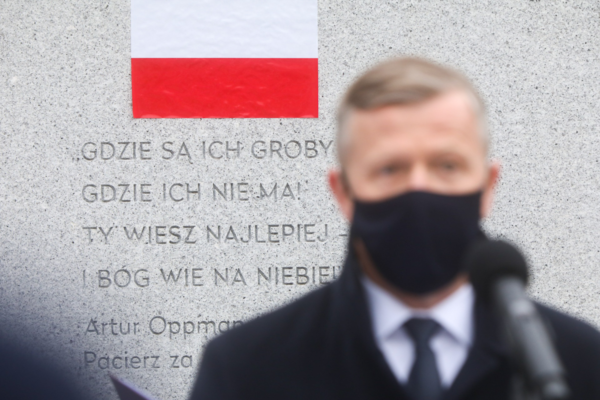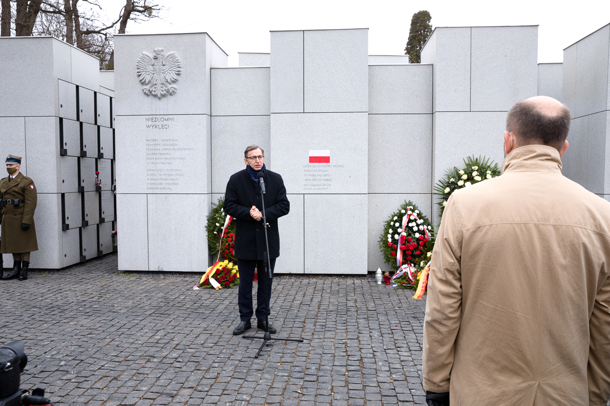 Prezes IPN dr Jarosław Szarek podczas obchodów Narodowego Dnia Pamięci Żołnierzy Wyklętych na powązkowskiej „Łączce” – 1 marca 2021. Fot. Sławek Kasper (IPN) -