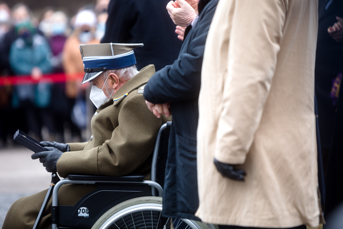 Płk Waldemar Nowakowski ps. Gacek podczas obchodów Narodowego Dnia Pamięci Żołnierzy Wyklętych na powązkowskiej „Łączce” – 1 marca 2021. Fot. Sławek Kasper (IPN) -