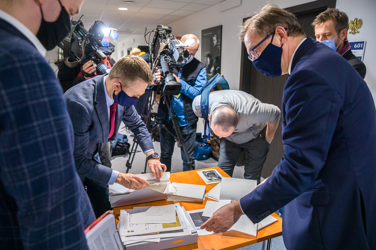 Briefing z udziałem prezesa IPN dr. Jarosława Szarka poświęcony publikacji zdjęcia Marii Barr w mediach społecznościowych – 17 marca 2021. Fot. Sławek Kasper (IPN)