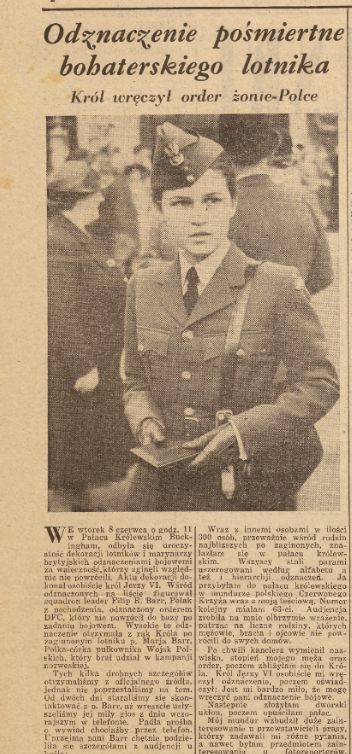 Pokazując oryginał fotografii Marii Barr, prezes IPN przypomniał, że to jedno z 39 mln zdjęć, które znajdują się w zbiorach IPN. Prezes IPN podał też, że Maria Barr urodziła się w Grodnie, a w czasie wojny trafiła z Francji do Wielkiej Brytanii, gdzie w 1943 r. – co uwidacznia fotografia – odbierała z rąk króla Jerzego VI odznaczenie wojskowe, przyznane pośmiertnie jej mężowi, pilotowi i dowódcy 107. Dywizjonu brytyjskich sił lotniczych RAF. Podał też, że bohaterka zdjęcia zmarła w 2018 r. i zapewnił, że IPN dołoży wszelkich starań, żeby poznać historię jej życia i zaangażuje się w jej upamiętnienie.