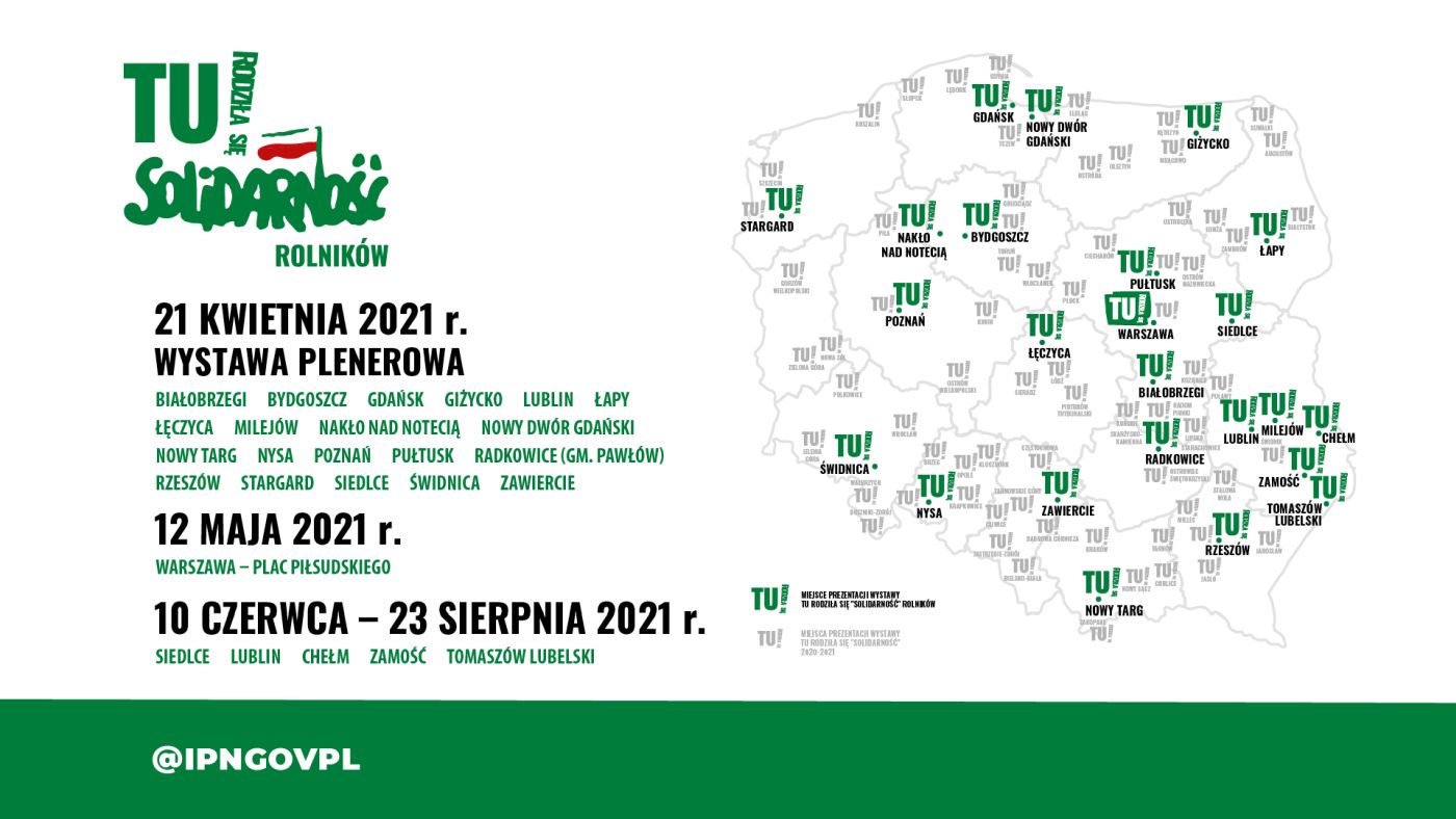 Z wystawą „TU rodziła się »Solidarność« rolników”, w najbliższych miesiącach będą mogli się zapoznać mieszkańcy Siedlec (10– 24 czerwca), Lublina (25 czerwca–12 lipca), Chełma (12–26 lipca), Zamościa (26 lipca–9 sierpnia), Tomaszowa Lubelskiego (9–23 sierpnia).