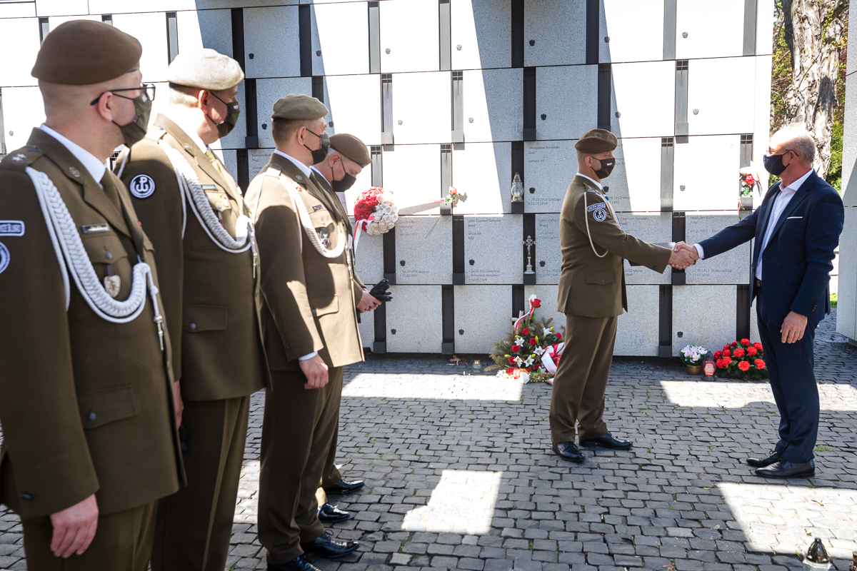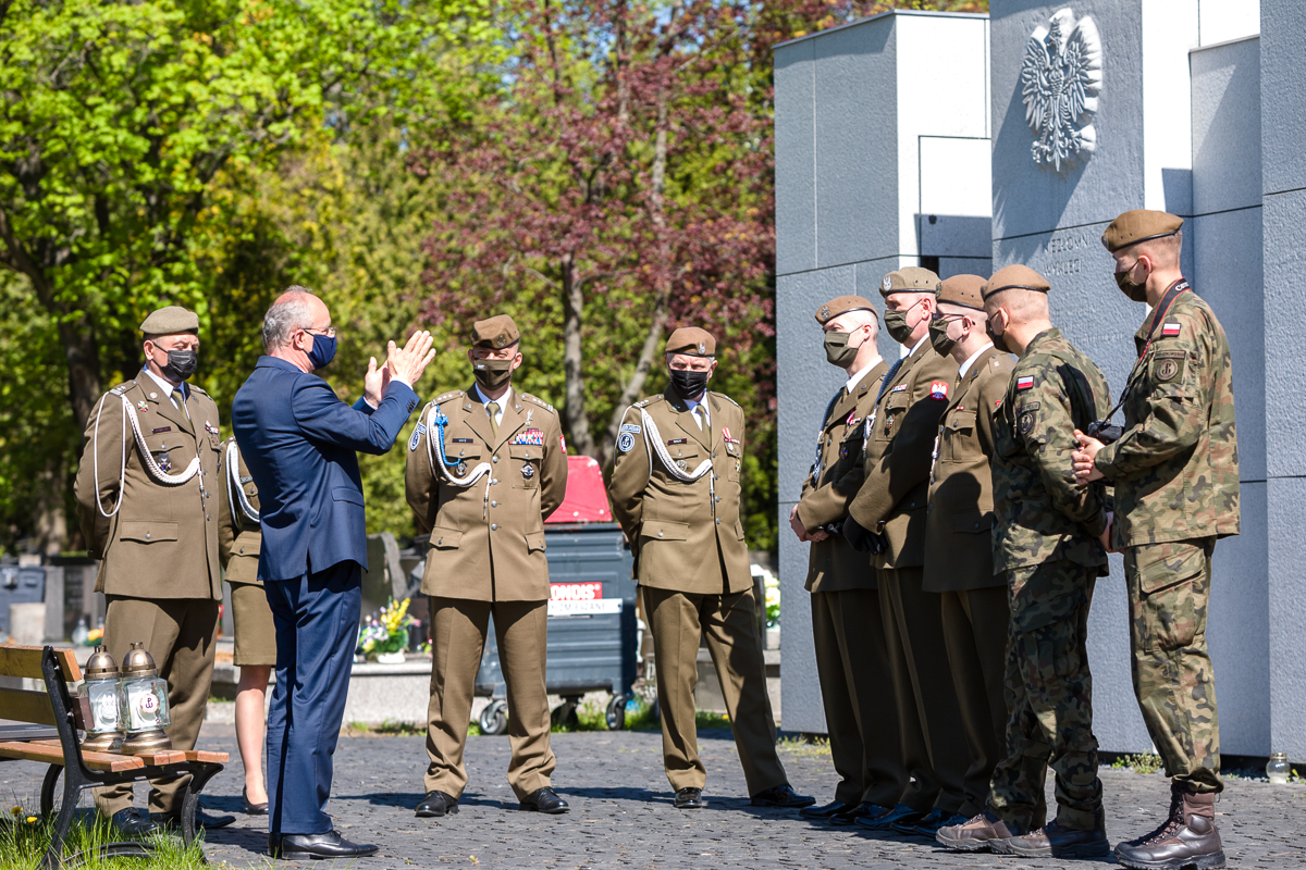 Przedstawiciele 4. Warmińsko-Mazurskiej Brygady Obrony Terytorialnej na powązkowskiej „Łączce” – 11 maja 2021. Fot. Sławek Kasper (IPN) -