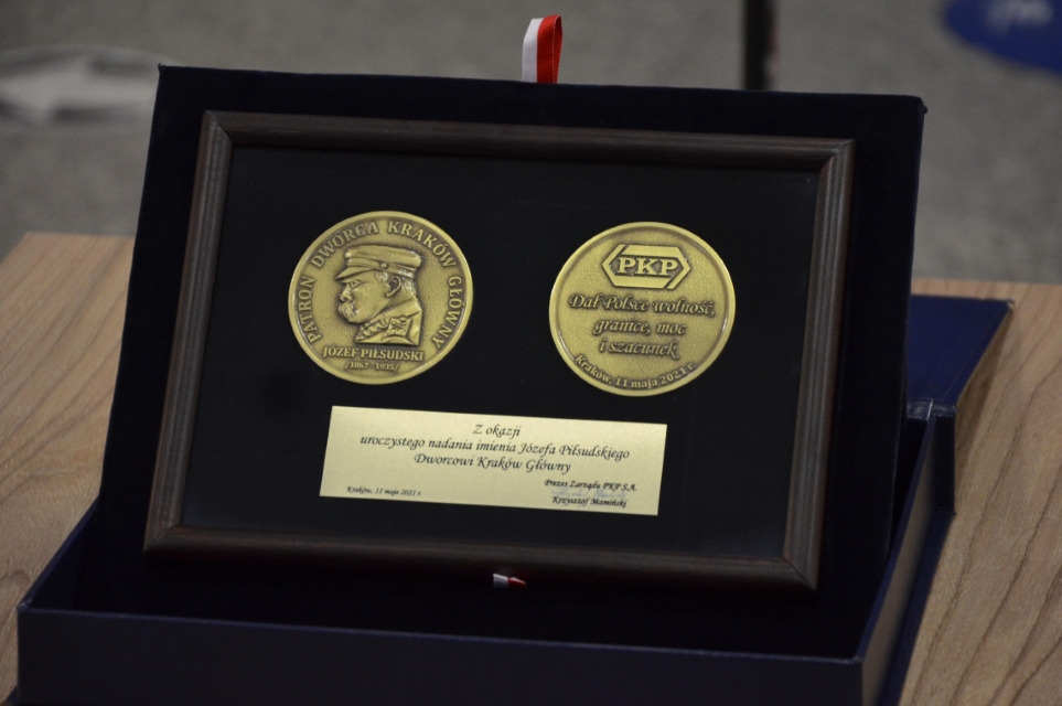 Od 11 maja 2021 r. dworzec PKP Kraków Główny nosi imię Józefa Piłsudskiego. Po porannej mszy świętej w katedrze na Wawelu, w intencji Marszałka i pracowników PKP, której przewodniczył metropolita krakowski abp Marek Jędraszewski, oficjalna część uroczystości odbyła się w holu głównym przy kasach nowego dworca. Na zakończenie zebrani, wśród nich dyrektor krakowskiego IPN dr hab. Filip Musiał złożyli kwiaty przy tablicy pamięci Piłsudskiego znajdującej się na fasadzie starego gmachu dworca.