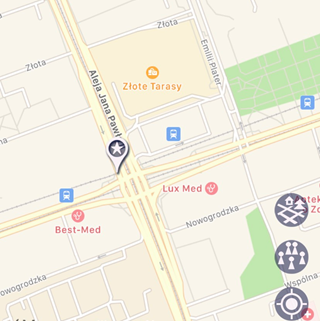 Trasa rozpoczyna się przed wejściem na stację WKD Śródmieście przy skrzyżowaniu Al. Jana Pawła II z Al. Jerozolimskimi w Warszawie.